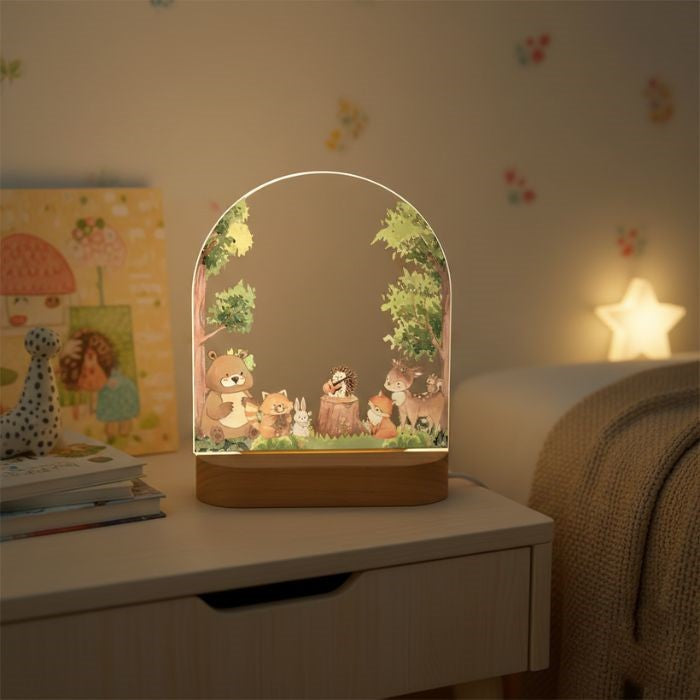 This personalized LED acrylic night lamp features a beautiful custom name design with an adorable girl and bunny artwork. It gives a soft, warm glow that creates a cozy and comforting atmosphere in any kids’ room or nursery. Crafted with premium acrylic and an elegant wooden base, it is both durable and stylish. A perfect keepsake gift for birthdays, baby showers, and special occasions