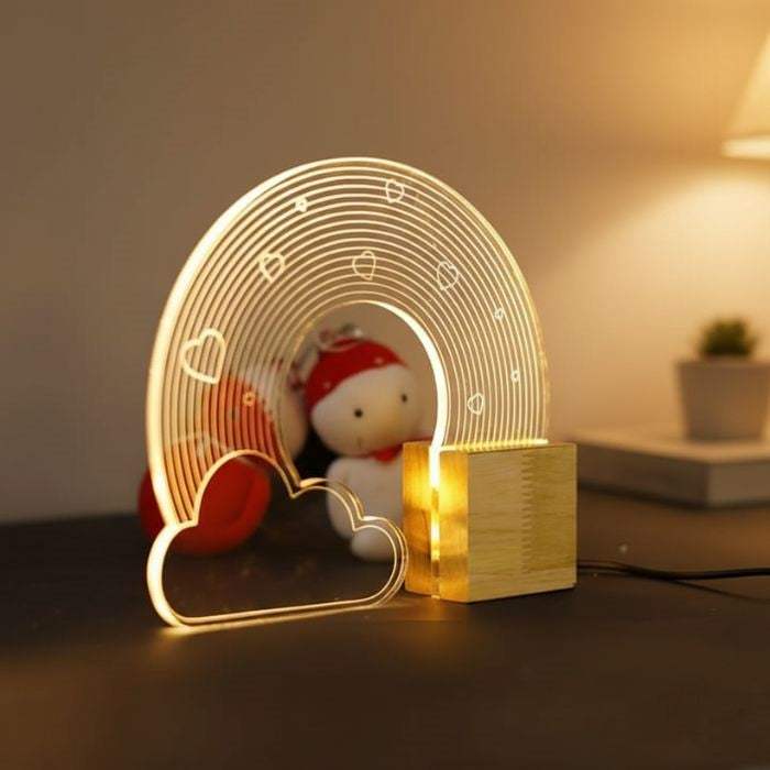 This personalized LED acrylic night lamp features a beautiful custom name design with an adorable girl and bunny artwork. It gives a soft, warm glow that creates a cozy and comforting atmosphere in any kids’ room or nursery. Crafted with premium acrylic and an elegant wooden base, it is both durable and stylish. A perfect keepsake gift for birthdays, baby showers, and special occasions.