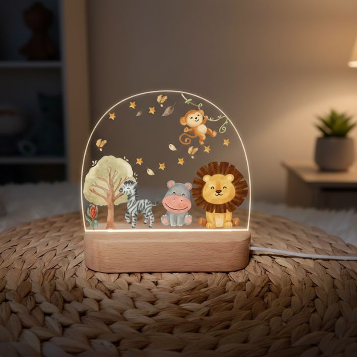 This personalized LED acrylic night lamp features a beautiful custom name design with an adorable girl and bunny artwork. It gives a soft, warm glow that creates a cozy and comforting atmosphere in any kids’ room or nursery. Crafted with premium acrylic and an elegant wooden base, it is both durable and stylish. A perfect keepsake gift for birthdays, baby showers, and special occasions.