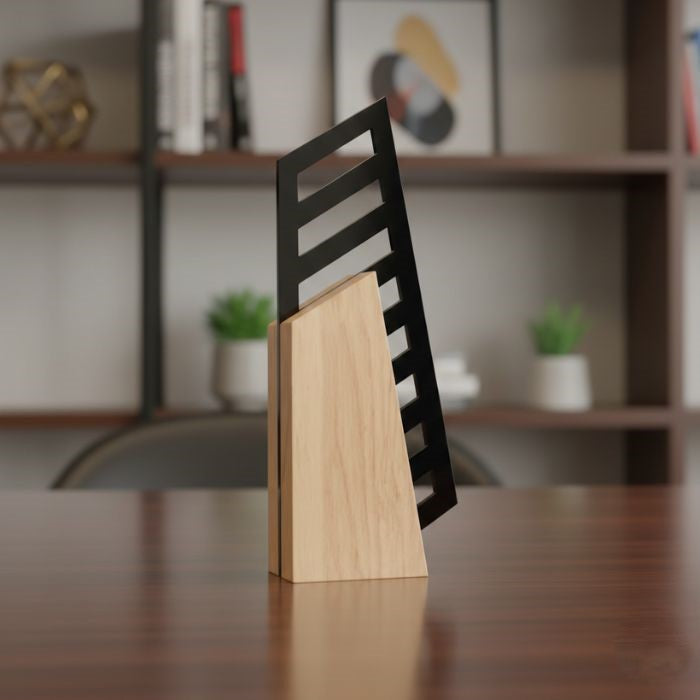 Crafted with a premium wooden base and a sleek metal finish, this trophy blends strength with sophistication. The smooth wooden surface and durable metal plate make it ideal for laser engraving and customized designs. Its modern yet elegant look enhances the prestige of corporate awards and appreciation ceremonies. Built for durability, this wood and metal trophy stands as a timeless symbol of achievement and excellence